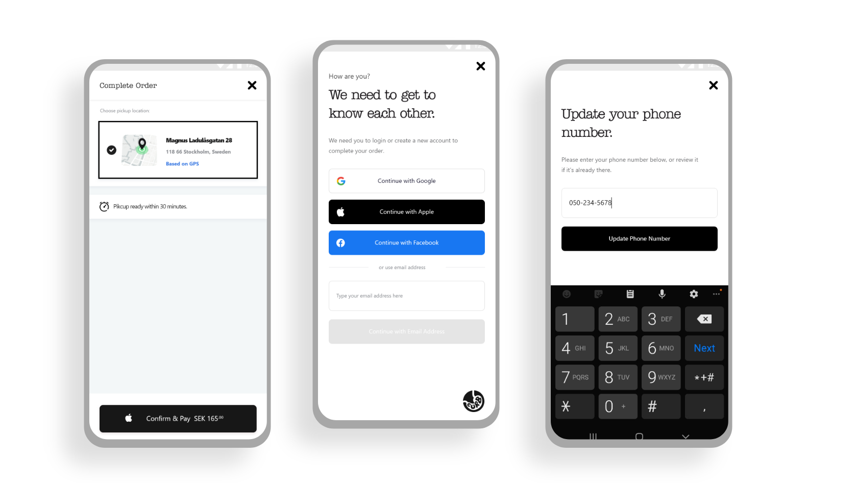 On Curb's food app, the user is not asked to create an account unless they are in the final payment step. This allowed us to present a pure food ordering experience to our targeted users.