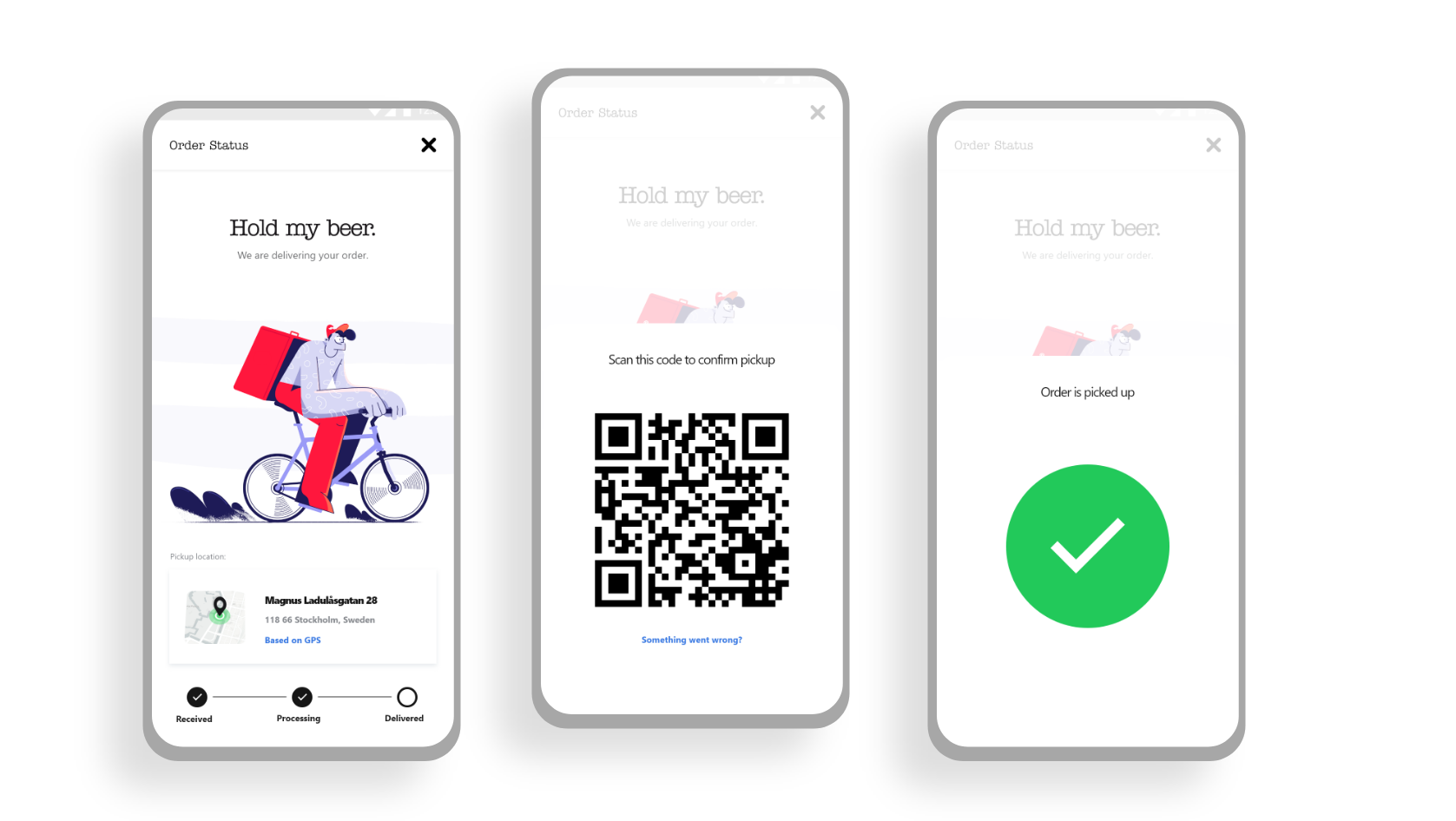 Users can track the status of the order, and once the order has been delivered the QR code shows up on their phone for the delivery guy to scan it to confirm final delivery on Curb's system.
