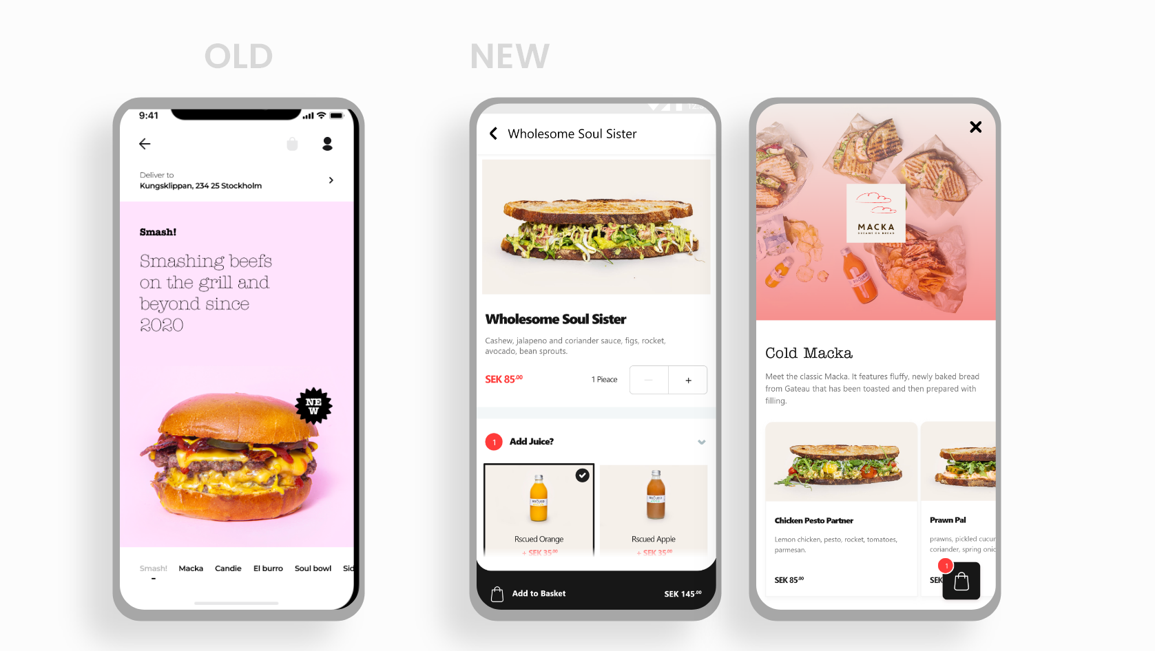 In the new design, the add to basket button was floated. This allowed the user to start the order at any time fast, unlike the old concept where users had to scroll down the whole page.