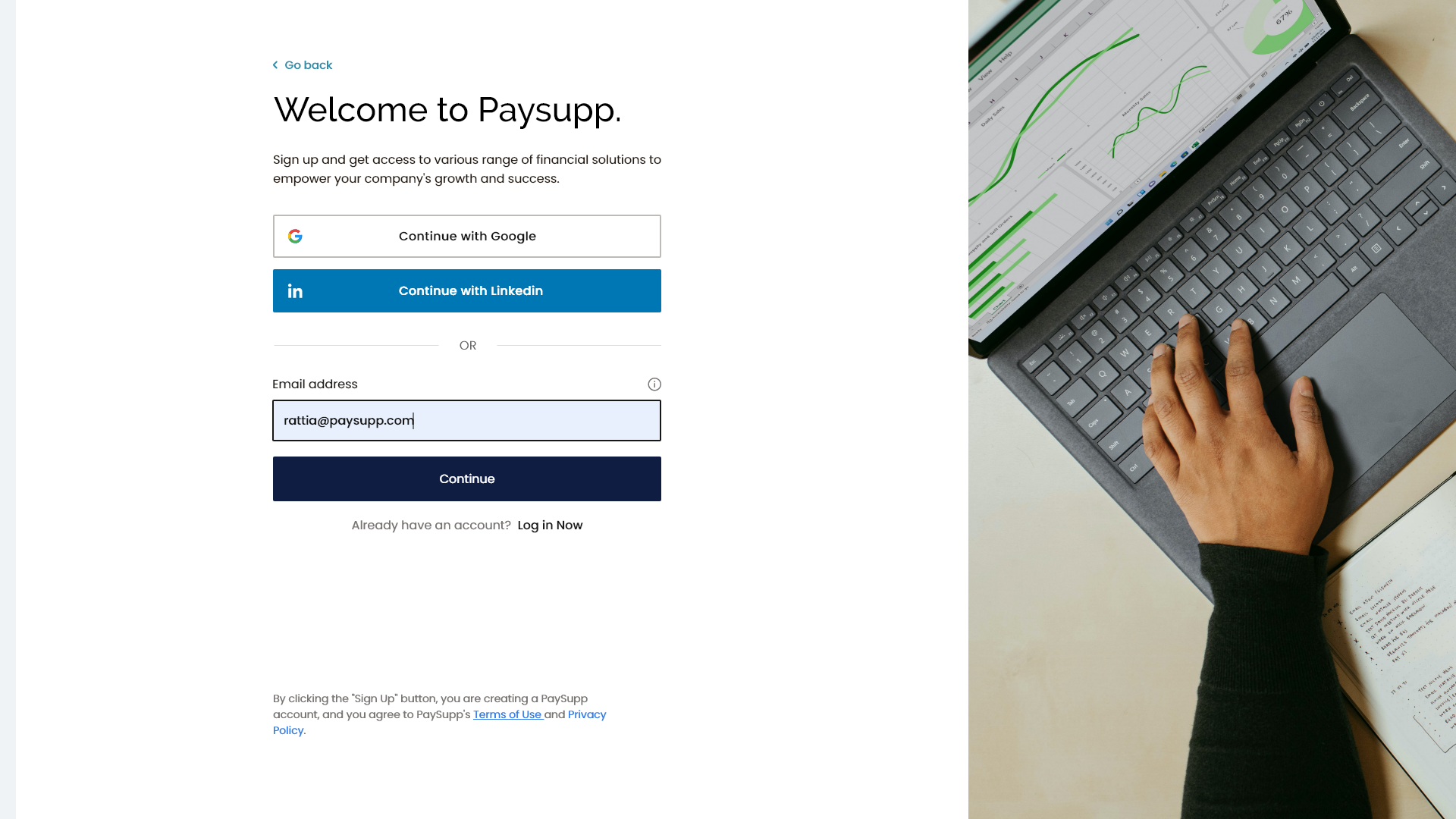 Users should enter all the details required in the onboarding process including (personal, company, solution information and upload verification documents) to be able to start an account.